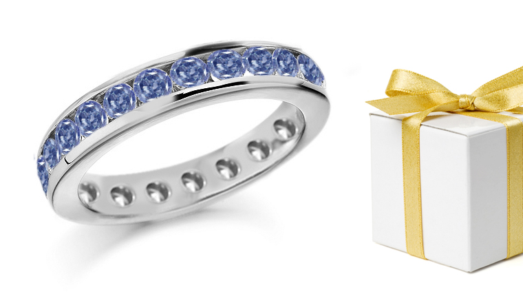 Platinum Blue Diamond Eternity Ring Set with blue round diamonds with